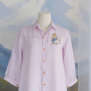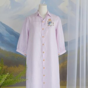 Sweet and playful with a touch of vintage charm, the Blush Bunny Linen Dress is made for gentle, carefree days. Designed in a soft pastel pink tone, this piece features a relaxed shirt-dress silhouette that feels light, airy, and effortlessly comfortable.