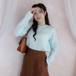 Soft, feminine, and effortlessly elegant—this outfit captures the essence of modern vintage style. Featuring a delicate pastel long-sleeve top paired with a beautifully embroidered skirt, this look is perfect for days when you want to feel both comfortable and refined.